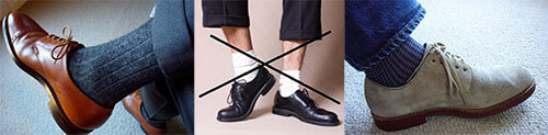 Khi bạn nhìn thấy một người đàn ông ăn vận chỉn chu trong bộ tuxedo và giày đen bóng nhưng để lộ đôi tất trắng đến mắt cá chân, bạn sẽ hiểu vì sao tất trắng chỉ nên mang với giày thể thao.